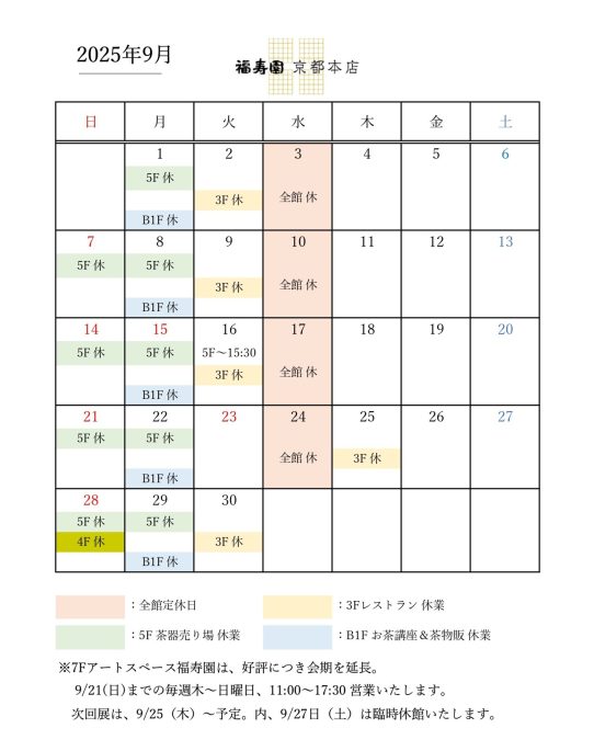 ※7階「アートスペース福寿園」は、木曜日~日曜日 11:00~17:30 営業。