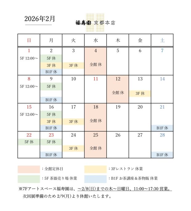 ※7階「アートスペース福寿園」は、~2/8(日)までの木曜日~日曜日 11:00~17:30 営業。